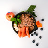 Poctivý BARF, jaký tu ještě nebyl. BARF Komplet Losos je kompletní mražené krmivo z čerstvého masa lososa – žádné odřezky, žádné kompromisy. Přidali jsme k němu čerstvé hovězí srdce a játra, mleté kosti, zeleninu, ovoce i bylinky.